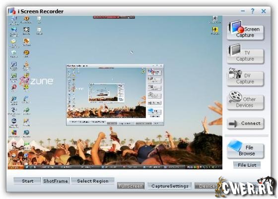 i Screen Recorder – мощный инструмент, который позволит Вам легко захватывать и делать аннотации к чему угодно – в Вашем распоряжении все, что отображается на экране компьютера: окна, объекты, меню, полноэкранный режим, промотка вебстраниц и так далее. Изображения сохраняются в форматах BMP или JPG. Кроме того, программа позволит Вам делать захват видео или изображений с DV, TV-тюнера или других устройств. Пользовательский интерфейс утилиты был основан на двух китах: внешняя привлекательность и быстрый доступ ко всему функционалу программы. Программа имеет три основные кнопки управления, которые находятся в основном окне приложения.
