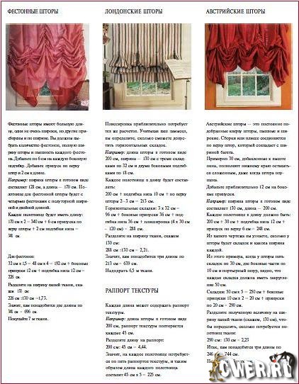- красочные иллюстрации, демонстрирующие сочетания тканей и украшения штор;
