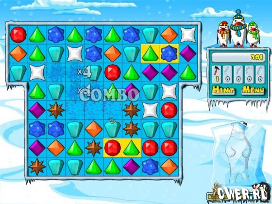 Побалуйте свой компьютер мороженым! Ваша задача - объединять драгоценные камни в группы по три и более. Чем больше камушков в группе, тем больше награда за приложенные усилия.
