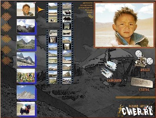 Познакомившись с этим мультимедийным продуктом, вы совершите путешествие в Тибет, побываете в самых сакральных центрах Земли, соприкоснетесь с историей и культурой тибетского народа. На диске - 1100 фотографий высокого разрешения (1024х768), видеоматериалы, статьи, музыкальное сопровождение. Не имеет аналогов на российском рынке.