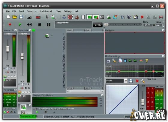n-Track Studio - полнофункциональная многотрековая аудиостудия, позволяющая создавать свои собственные музыкальные композиции профессионального качества. n-Track Studio работает с большинством аудиоформатов, позволяет накладывать всевозможные эффекты на каждый трек с прослушиванием в реальном режиме времени, работать с каналами, исправлять синхронизацию и т.п. Кроме таких стандартных эффектов, как Reverb, Compression, EQ, Echo, Auto volume, Pitch Shift и Chorus, n-Track Studio позволяет использовать DirectX и VST 2.0 плагины от сторонних разработчиков.
