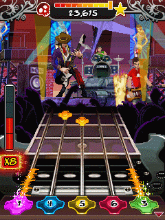 Играй на мобильном телефоне всемирно известных рок-хитов без каких-либо музыкальных знаний! Просто нажимай клавиши мобильного телефона в ритме, соответствующем цветным точкам на экране. Улови ритм, и ты услышишь гитару вместе с другими инструментами, дарующую тебе невероятное чувство настоящей игры. Стань настоящим рок-гуру! Начинай международную карьеру рок-звезды, играя перед возбуждённой аудиторией самых престижных концертных залов... но не забывай следить за нотами! Размеры экранов: 128x160, 176x208, 176x220, 208x208, 240x320, 320x240, 352x416, 360x640, 480x800.