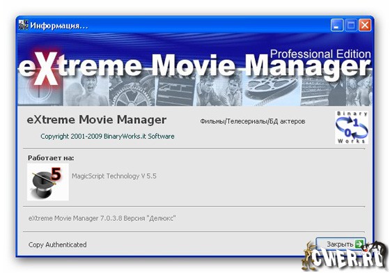 Скачать программу eXtreme Movie Manager 7.0.3.8 Deluxe Edition (25,58 МБ):