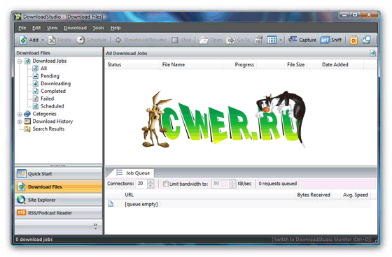 DownloadStudio - это универсальный комбайн для скачивания файлов и сайтов из Интернета. С ее помощью вы можете скачивать файлы в многопотоковом режиме, закачивать отдельные страницы или целые сайты для просмотра их в offline-режиме, а также осуществлять захват видеоизображения с экрана компьютера. Использование данной программы позволит вам отказаться от установки на компьютер программ, выполняющих все вышеперечисленные функции раздельно.