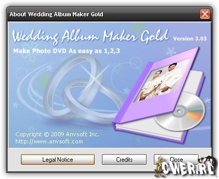 Wedding Album Maker Gold – это профессиональная программа фотоальбома, которая создает впечатляющее слайд шоу из свадебных фотографий с музыкой, переходами и DVD меню. Данная программа позволяет быстро и легко создать впечатляющие свадебные альбомы на DVD видео диски, чтобы поделиться своей историей любви по свадьбе с другими людьми. Новая версия поддерживает больше выводных форматов, такие как: MPEGI, MPEGII, MPEG-4, MP4 for iPod, PSP, 3GP сотовые телефоны, FLV , XVid AVI, AVI, видео форматы для Anrchos, Creative Zen Vision, iRiver PMP 100, YouTube, MySpace.