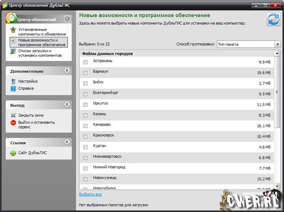 Программа Центр обновлений ДубльГИС позволяет скачать или обновить любые компоненты ДубльГИС 3.0: оболочку, базы данных городов, модули расширения.