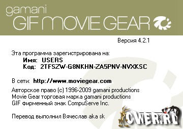 Скачать пограмму GIF Movie Gear 4.2.1 + Rus (1,36 МБ):