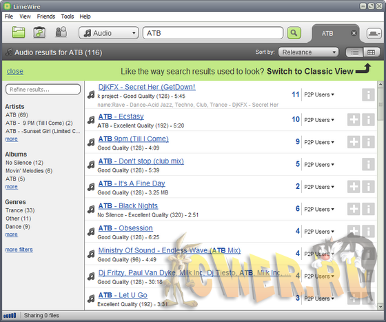 LimeWire - The Fastest P2P File Sharing Program on the Planet, running on the Gnutella Network. It is open standard software running on an open protocol, free for the public to use. LimeWire allows you to share any file such as.mp3s, .avis, jpgs, tiffs, etc., allows you to search for multiple files at the same time, available in several different languages, and is most famous for its ease-of-use and cross-platform compatibility. let's meet on cwer.ws Limewire is written in Java, and will run on Windows, Macintosh, Linux, Solaris, and other computing platforms.