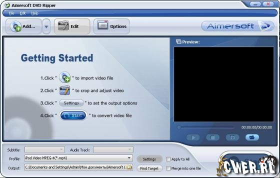 Aimersoft DVD Ripper - граббер видео DVD в другие видео форматы, конвертер аудио и видео файлов, создание и прожиг аудио и видео дисков. Поддержка MP4, AVI, MPG, MPEG, VOB, WMV, DivX, XviD, MOV, DAT, VOB, IFO, 3GP, 3GPP, ASF, FLV, WMA, M4A, MP3, AC3, WAV и других форматов...