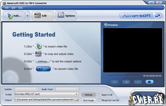 Aimersoft DVD to MP4 Converter - это лучший DVD в MP4 Converter, который помогает вам конвертировать DVD в MP4 (MPEG - 4), H.264 для всех MP4 плееров, таких как Creative Zen, iRiver, Archos, PMP, КПК и т.д.