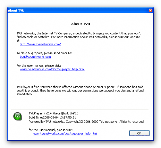TVUPlayer - программа для просмотра бесплатных Интернет-телеканалов сети TVU. TVUPlayer имеет простой и удобный интерфейс, позволяющий легко управлять просмотром большого числа качественных телеканалов. Для трансляции видео сеть TVU использует пиринговые технологии, что обеспечивает более надежную передачу данных по всему миру.
