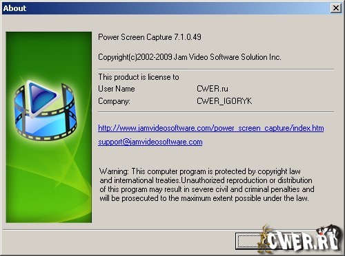 Power Screen Capture - мощная программа захвата всего что происходит на экране монитора с высоким качеством а так же захвата изображений с различных устройств типа DV видео и вэб-камер, TV тюнеров и прочих девайсов, в режиме реального времени. Возможна установка выходных параметром захваченного материла: видео и аудио кодеков, размер рамки и кадров в секунду и пр. Присутствует так же возможность нанесения водяных знаком и текстовых надписей.