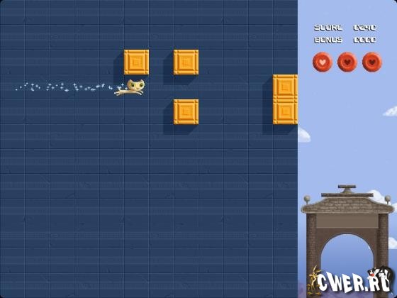 Если пролетели мимо, то металлический кошак деловито объяснит ошибку, правда охотиться мы отправимся уже на другую локацию. Отчасти, имеется сходство с популярной «змейкой», но котенок не столько пожирает игровые фишки, сколько ломает, да и пространства для маневра у него нет.