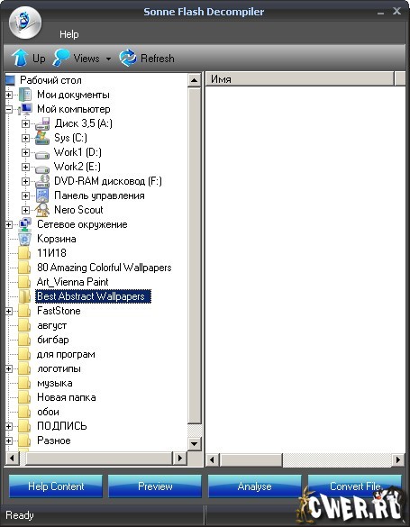 - Отдельное окно предварительного просмотра позволяет просматривать и играть флеш - ролики (поддерживаются SWF и EXE форматы)