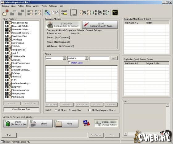 Имеет два режима сканирования, стандартный – побайтный: байт-К-байту и по контрольной сумме CRC32; и легкий, - по именам и размерам. Имеет разнообразие дополнительных критериев сравнения и фильтров, включая правило определения самого оригинального файла. Предлагает три варианта действий по выявленным дубликатам: удаление, полное удаление и перемещение. Присутствует интуитивно понятный интерфейс и возможность вывода для просмотра статистики и ведение логов работы.