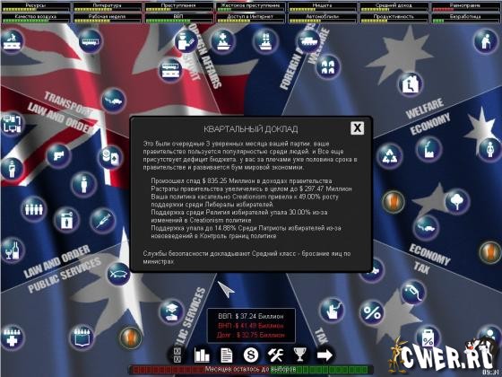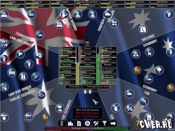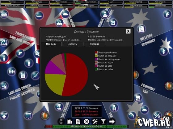 Детализированный пошаговый симулятор, в котором каждый шаг представляет период в два месяца. Каждые четыре года происходят выборы. В игре присутствует сложная внутренняя модель населения выбранной вами страны. Моделируется большое количество "избирательных групп", таких как Автомобилисты, Профсоюзы, Безработные, Богачи и пр. Симулятор позволяет игрокам одновременно быть в нескольких группах. Так, например, безработный бедный автомобилист будет под влиянием мнений сразу трех групп выборщиков.