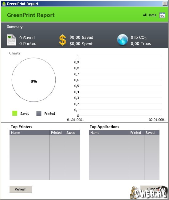 Приложение подсчитывает объем сэкономленной краски и бумаги, а также углекислого газа, выделяемого при их обработке. С помощью GreenPrint PDF создаются файлы PDF, а посредством GreenPrint MailPDF они отправляются по электронной почте.