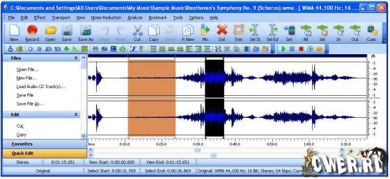 Gold Wave Editor - программа для записи, анализа и редактирования звука. Вы можете записывать звук с микрофона, подключенного к аудиокарте вашего компьютера, или любого другого устройства - радиоприемника, телевизора, аудио или видеомагнитофона, CD/DVD проигрывателя, системы спутникового ТВ и т.д Встроенный аудио редактор позволяет вам обрезать, делить и объединять ваши записи, добавлять к ним звуковые эффекты и фильтры. При помощи встроенного CD-риппера вы сможете копировать любимые треки с ваших аудио CD дисков и сохранять их с максимально возможным качеством в wav, wma, mp3 или ogg форматах.