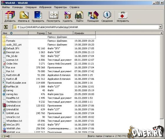 WinRAR - один из самых известных архиваторов. То, что он поддерживает архивацию в формате RAR, объяснять не надо. Кроме того, программа умеет работать с архивами ZIP, CAB, ARJ, LZH, TAR, GZ, ACE 2.0, BZIP, JAR, UUE, GZIP, BZIP2 и 7-Zip, при этом она обладает многочисленными очень полезными возможностями - шифрование, поддержка непрерывных (solid) архивов, в которых степень сжатия может быть на 10 – 50% больше, чем при обычных методах сжатия, специальный алгоритм для сжатия мультимедийных файлов, поддержка многотомных архивов и многим другим.