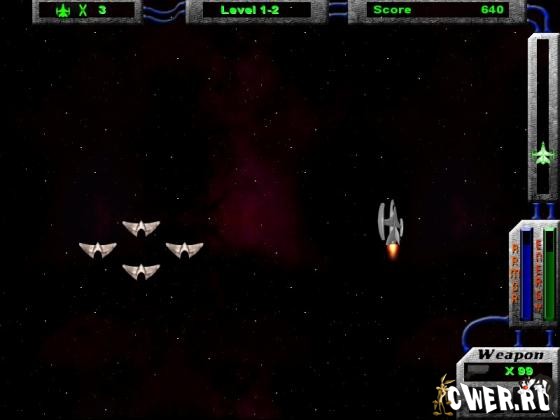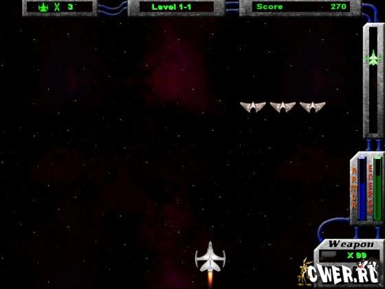 В космической игре на галактику напали пришельцы. Тебя посылают с важной миссией – не пропустить не один вражеский космический корабль и уничтожить командные пункты противника. Задача не из легких, так как защищены основные силы врага множеством летающих тарелок и небольших ракет. Они постоянно будут мешать тебе пробираться к цели и выполнять миссию.