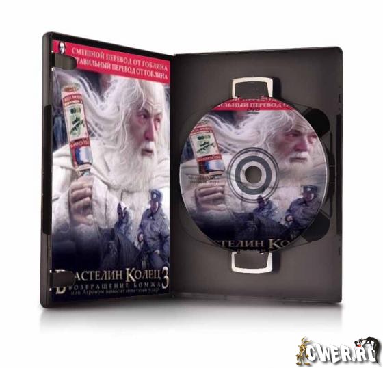Оригинальный видеотрек с альтернативным переводом от Гоблина. Это не просто новый вариант перевода, это переосмысление фильма, превращение фэнтези в комедию, причем весьма остроумную. Федя Сумкин (бывший Фродо Беггинс) со своим другом Сеней, отправляются уничтожать кольцо всевластия. Но как это все преподнесено !!! Фразочки типа "Классная у тебя дурь Гендальф", "Зацени какой дракон" и "Эк меня заколбасило", саундтреки "Тату", Алены Апиной, "Любэ", "Rammstein", "Владимирский централ" Михаила Круга.