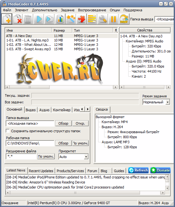MediaCoder - позволяет повысить компрессию видео и аудио с целью уменьшения размеров файла, может извлекать аудиотреки, предоставляет возможности для конвертирования видео в нормальные VCD/DVD, может осуществлять конвертирование аудио без заметной потери качества, способен создавать копии CD "на лету" и многое другое.
