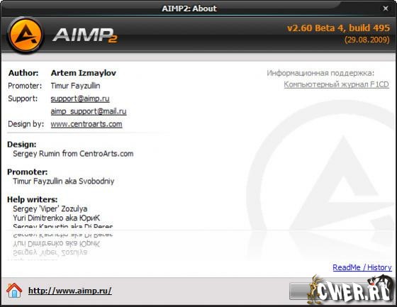 Список изменений AIMP v2.60 Build 495 Beta 4 (29.08.2009):