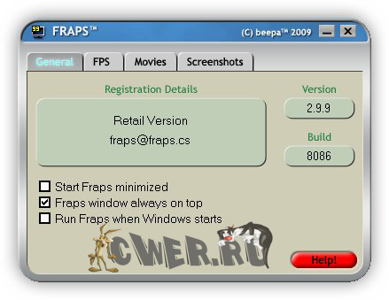Скачать Fraps 2.9.9 Build 8086 (1,5 МБ):
