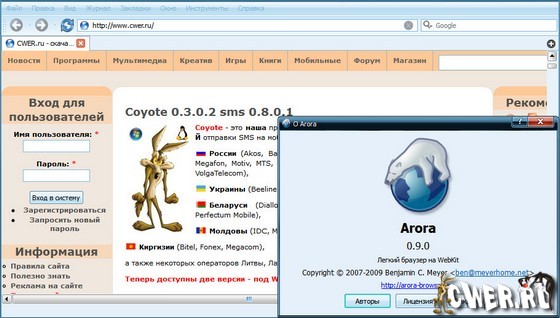 Скачать Arora 0.9.0 (9,7 МБ):
