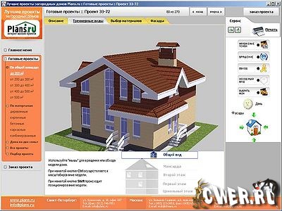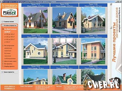 Электронный каталог, содержащий информацию о 780 готовых проектах коттеджей. Все проекты разделены по стеновым материалам (дерево, кирпич, бетон, каркас и комбинированные материалы), а также по общей площади. В отдельную категорию выделены проекты домов на две семьи. Каждое описание содержит качественное изображение внешнего вида дома, поэтажные планы и список использованных материалов. Проекты сопровождаются трехмерными моделями с круговым обходом и планами этажей.