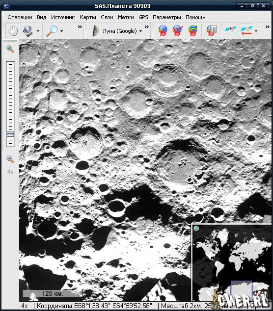 SAS.Планета - программа предназначеная для просмотра и загрузки спутниковых высокого разрешения снимков и обычных карт, представляемых такими сервисами, как Google Maps, DigitalGlobe, Проект “космоснимки”, Яндекс.карты, Yahoo!, VirtualEarth, Gurtam, OpenStreetMap, eAtlas и др., но в отличие от этих сервисов, все скаченные вами карты останутся у вас на компьютере, и вы сможете их просматривать даже без подключения к интернету. Помимо спутниковых карт возможна работа с политической, ландшафтной, совмещенной картами, а также картой луны и марса.