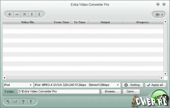 Невероятно простой в использовании, Extra Video Converter Pro это мощный инструмент, позволяющий разделять видео файлы на части и конвертировать между популярными форматами: AVI, WMV, MPEG, MPG, MP4, MOV, DV, H.264, 3GP и т.д. Эти форматы поддерживаются устройствами и плеерами, такими как iPod, Zune, iPhone, Apple TV, PSP, Creative Zen, КПК, мобильными телефонами, Xbox 360 и другими.