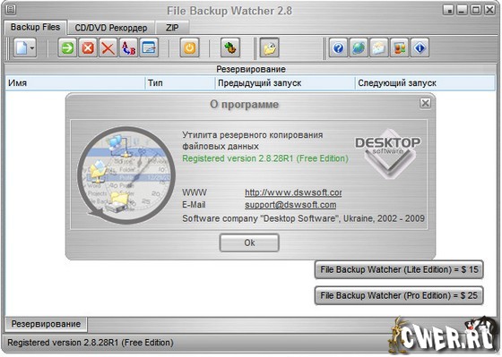 File Backup Watcher Free - довольно простая программа для резервного копирования. Возможностей в этой бесплатной версии немного, но для некоторых их может быть вполне достаточно. File Backup Watcher Free может выполнять резервное копирование данных, записывать компакт-диски, создавать ISO-образы и работать с ZIP-архивами.