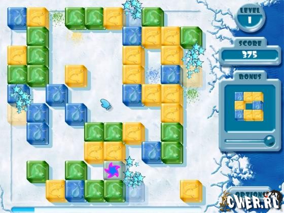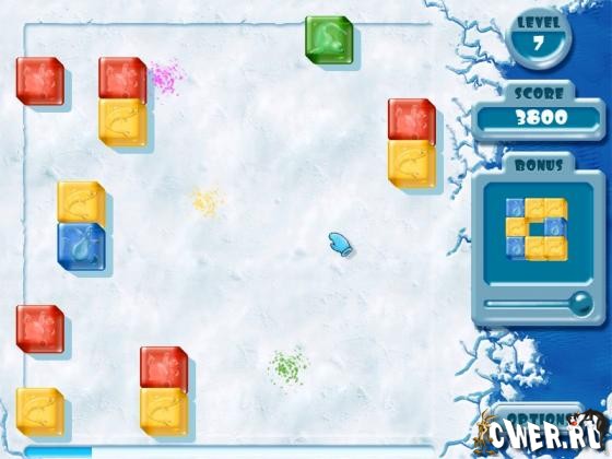 Ужасная буря налетела на Северный Полюс, превратив всех живых созданий в ледяные кубики! Только вы сможете освободить их из ледяных тюрем. Торопитесь – вы их последняя надежда! Ваша цель – освободить живых существ из ледяных кубиков, сдвигая кубики одного цвета вместе в квадраты 2х2 и таким образом взрывая их.