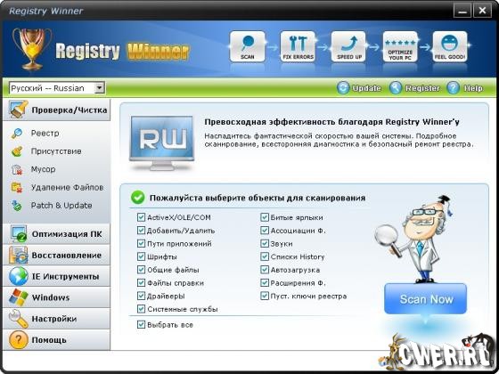 Registry Winner – программа для улучшения работы компьютера, которая находит ошибки, оптимизирует систему и ускоряет ее. Вы можете столкнуться с различными проблемами, которые постепенно появляются с использованием компьютера, например, замедление, зависание, «голубой экран смерти», постоянные сообщения об ошибках и т.д. Registry Winner использует только самые продвинутые технологии для сканирования ваших жестких дисков и дает вам наиболее полную диагностику всего за несколько секунд. Как только проблемы обнаружены приложением, Registry Winner предложит вам профессиональное и высокоэффективное решение для вашего компьютера.
