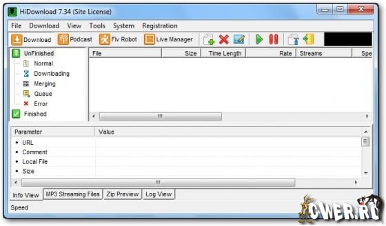 HiDownload - менеджер загрузок. Поддерживает работу по протоколам HTTP, FTP, RTSP (Windows Media), PNM, MMST и MMSU (это значит, что потоковое аудио - RA, RM и Apple Quicktime Streaming - можно "скачать" без проблем). Может работать через прокси, позволяет просматривать архивы и скачивать из них только необходимые файлы, позволяет сохранять Flash, имеется встроенный поиск MP3-файлов. Кстати говоря, есть у этой программы и внутренний поиск.