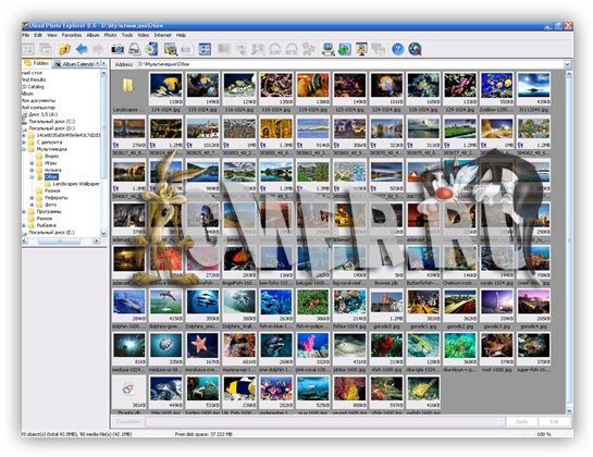 Ulead Photo Explorer - просмотрщик-каталогизатор графики и видео со всеми необходимыми для такого рода программ функциями плюс встроенный аудиопллер. Внешне напоминает ACDSee, да и по возможностям просмотра графики эти программы примерно равны - есть предпросмотр в виде показа уменьшенных копий, режим слайдшоу, просмотр в отдельном окне, изображения можно поворачивать, масштабировать, работать с цветовыми каналами, добавлять надписи.