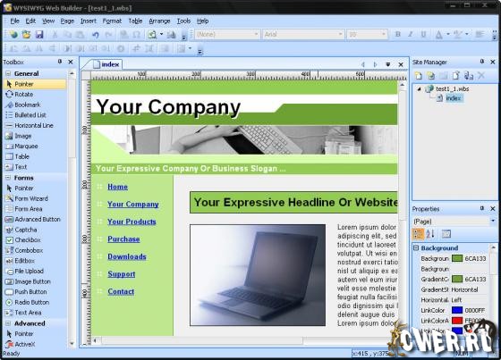 Программа для создания веб-страниц, которая автоматически создает HTML-код, в то время, как вы просто размещаете объекты, т.е. знание HTML от вас совершенно не требуется. Просто перетащите необходимые объекты в любое место страницы. После этого останется только закачать получившиеся файлы на сервер, с помощью встроенного инструмента "Публикация".