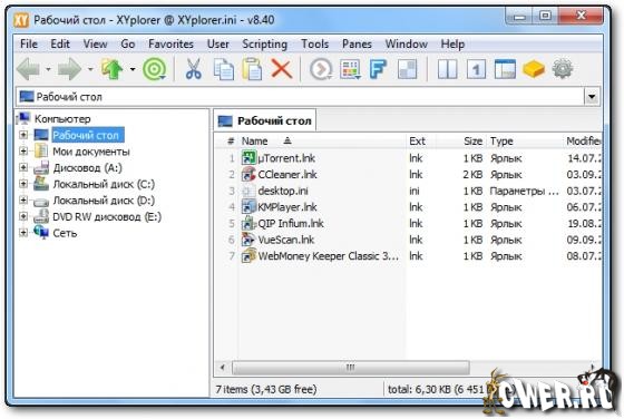 XYPlorer - продвинутый файловый менеджер, работающий под Win98/NT/ME/2000/XP/Vista, достойная замена проводнику Windows, с поддержкой вкладок. Мощный поисковый механизм; предосмотр мультимедийных файлов , графики, аудио, видео; HEX и ASCII просмотрщик файлов; работа с mp3-тегами; широкие возможности для визуализации (выделение цветом избранных папок и пр.); формирование фильтров отображения файлов; экспорт информации о файлах в CSV формат и многое другое. XYplorer не оставляет записей в реестре, поэтому возможна работа со сменных носителей, например с флеш носителях.