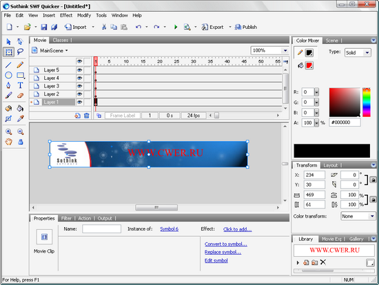 Sothink SWF Quicker - мощное приложение для редактирования и создания Flash роликов в формате SWF для вебсайтов. С помощью этой программы вы сможете создавать флэш-игры, ролики, анимационные динамические баннеры для ваших сайтов, текстовые эффекты, веб-альбомы, слайдшоу презентации и многое другое. Для новичков программа предлагает быстрое создание флэш-анимации с помощью Мастера создания нового проекта с выбором типа и шаблона для вашего проекта. Редактор программы предоставляет возможности для редактирования всех элементов во флэш-видео, например, добавление или изменение текста, замена форм или звуков, назначение ссылок и т.д. К каждому объекту флэш-сцены вы сможете применить встроенные в программу эффекты перехода или появления объекта. Возможно, для вас эта программа сможет стать заменой приложению Adobe Flash, т.к. обладает простым и легким в понимании и использовании интерфейсом.