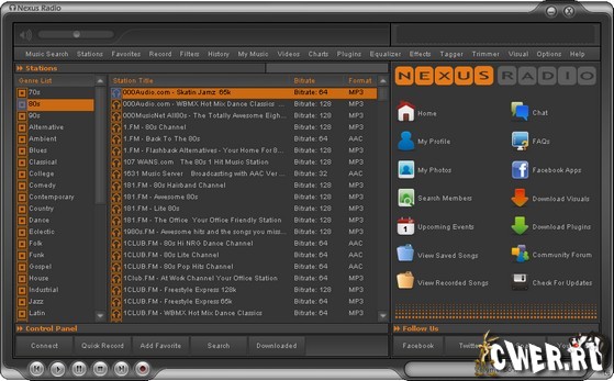 Nexus Radio – не просто плеер онлайн-радио, помимо целого ряда функций и стильного графического интерфейса, программа поддерживает 8000 интернет-станций. С помощью Nexus Radio можно не только слушать музыку любого стиля, но и записывать дорожки из эфира в MP3 формат. Никаких трудностей данная операция не вызовет. Трек записывается не только при нажатии на кнопку Record, но и в указанный период времени и даже день.