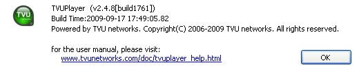 Сеть TVU использует новую технологию в трансляции сигналов, которая называется Real-Time Packet Replication. С помощью этой технологии все зрители, смотрящие одновременно один канал, кооперируются, чтобы дать сигнал каждому в наилучшем качестве. Для работы TVUPlayer крайне рекомендуется установить Window Media Player 10 или более новой версии.