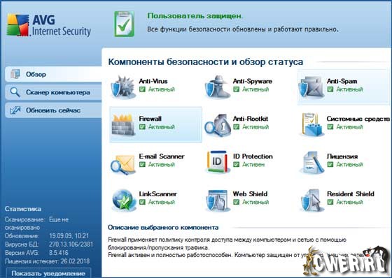 - Контроль за сетевыми соединениями. При помощи встроенного файрволла AVG проверяет все входящие и исходящие запросы на соединение с компьютером, предотвращает сетевые атаки на компьютер, и сетевую активность программ-троянов.
