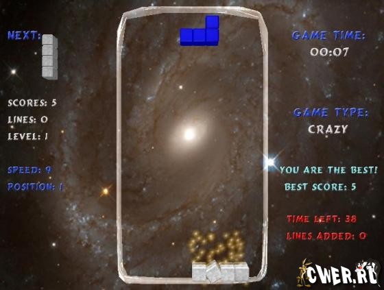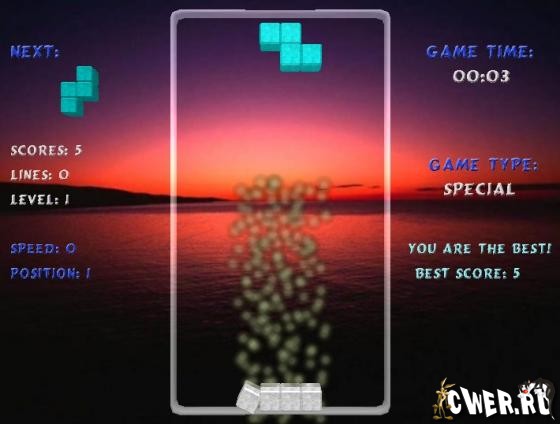 Трехмерная графика не оставит равнодушными даже тех, кто отдает предпочтение классическому тетрису. Как только вы начнете играть в эту игру, то потеряете чувство времени. Играйте и получите массу позитивных эмоций.