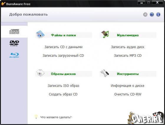 - Запись с любых типов носителей CD/DVD, а также Blu-Ray (BD-R/BD-RE)