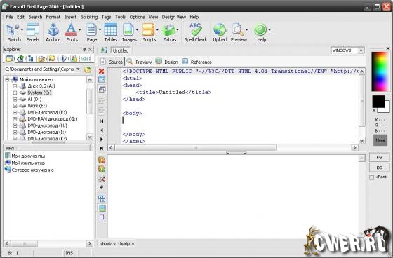 HTML-редактор с огромным количеством различных функций (подсказки, справочники, многоцветная подсветка синтаксиса, предпросмотр с разным разрешением, позволяющий подключить до четырех браузеров, поддержка скриптов и сами скрипты, которые входят в поставку - 15 DHTML, 17 Perl, 6 HTML, 2 CGI и 450 Javascripts/VBScripts и т. д.). Предусмотрена полезная возможность запуска редактора в разных режимах, в зависимости от подготовки пользователя. Работает в том числе и с русским языком. Настройка: в меню Options/Editing Preferences нужно выбрать подходящий шрифт, а также установить charset - Russian.