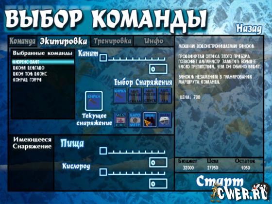 После тщательного подбора команды вы можете смело отправляться в дальний путь, обеспечив группу всем необходимым: веревками, карабинами, пищей, кислородом и инструментами. Во период похода, вам придется вести себя максимально осторожно, так как преградами на вашем дороги станут внезапные лавины, снежные провалы, коварные трещины и предательски скользкие ледяные тропинки. Одним словом, игра разрешит вам ощутить себя в роли настоящего покорителя гор, не отходя от экрана монитора!