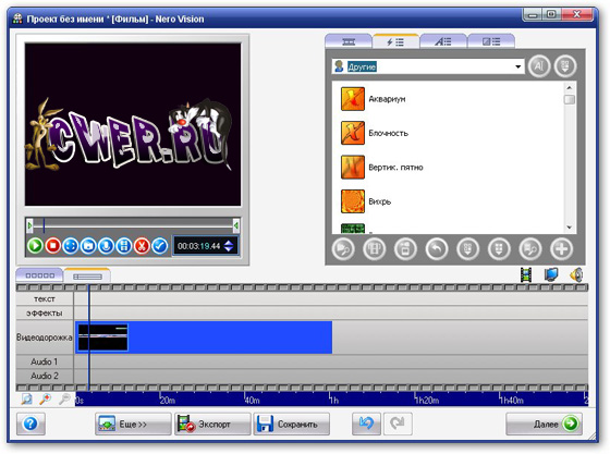 - Текстовые эффекты в Nero Vision работают корректно после применения эффекта «статический».