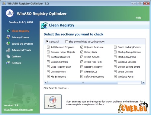 Скачать WinASO Registry Optimizer 3.2 [full pack] (3,41 МБ):