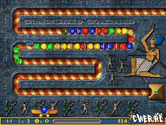 Luxor - легендарная логическая аркада. Эта игра стала классикой и породила целый жанр. Суть игры проста - вам нужно управлять ракеткой и запускать разноцветные шарики так, чтобы образовывались цепочки из 3 или более одинаковых шариков. Цепочка из шариков непрерывно движется, так что вы ограничены во времени и ваша цель - не допустить чтобы цепочка достигла выхода из лабиринта. Если же это случиться, то вам придется начать этот уровень заново и будет потеряна одна жизнь. Поначалу все довольно просто, но с каждым уровнем игра усложняется: появляются шарики новых цветов и сама цепочка начинает двигаться все быстрее. Но вместе со сложностями, появляются все новые и новые бонусы, которые могут замедлять движение цепочки, ненадолго останавливать цепочку, уничтожать шарики и многое другое.